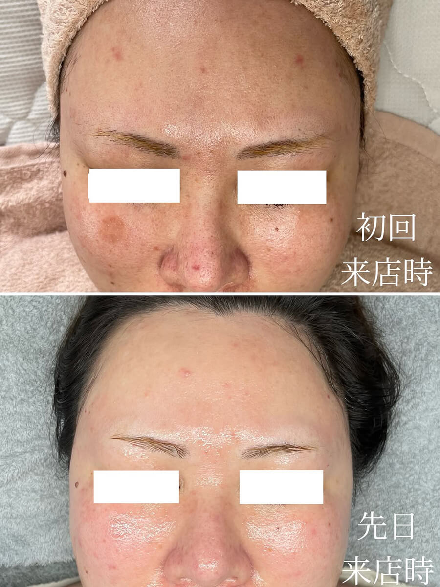 ビフォー・アフター 30代後半 A様 ◆お客様のお悩み◆ くすみ、毛穴、ニキビ 古い角質や産毛をやさしく一掃する《フェイシャル美肌ワックス》、肌細胞の働きをサポートする《オメガライト》の深層保湿エイジングを組み合わせた“素肌の力を底上げするケア” くすみ・毛穴・ニキビに根本アプローチ‼︎ 30代を過ぎると、肌は20代の頃と同じケアでは追いつかなくなります。 仕事・ストレス・睡眠不足・ホルモンバランスの変化… 知らず知らずのうちに “くすみやすい・乾燥しやすい・毛穴が目立つ” 肌へ傾きがちに… ・素肌のトーンがワントーン明るく ・ファンデがなめらかに密着 ・毛穴の影・黒ずみが目立ちにくく ・スキンケアの入りがぐんとアップ その場の手触りだけでなく“未来の肌のためのケア” を選ぶ事が大切な年代です。 月1回サロンケアと残り29日はホームケアが最強! 結果を出したい!肌悩みをお持ちの方はご相談ください。 \ビフォーアフターはInstagramにて更新中/ Instagramはこちら
